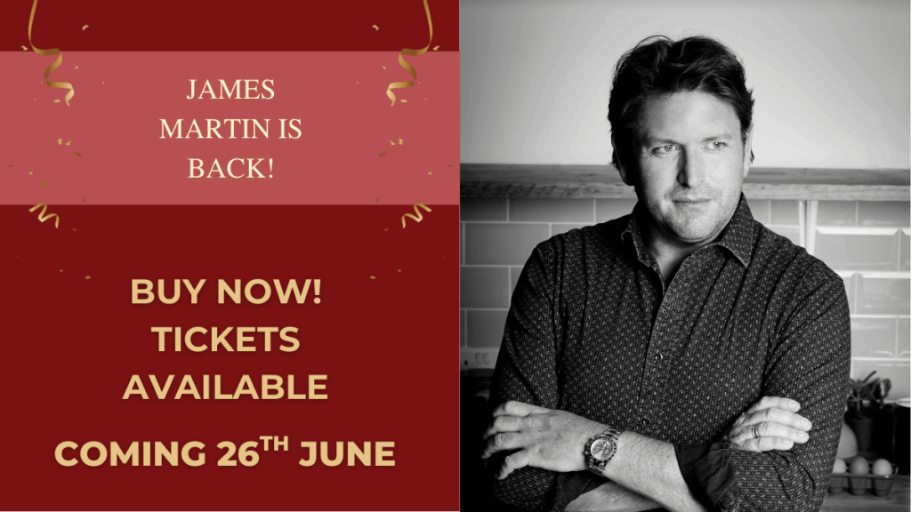 This exclusive event promises an engaging and entertaining hour filled with live cooking, humorous storytelling, and James’s trademark down-to-earth charm. Whether you’re a long-standing fan or discovering his culinary magic for the first time, this is a wonderful opportunity to enjoy great food, great company and great entertainment in an intimate setting.