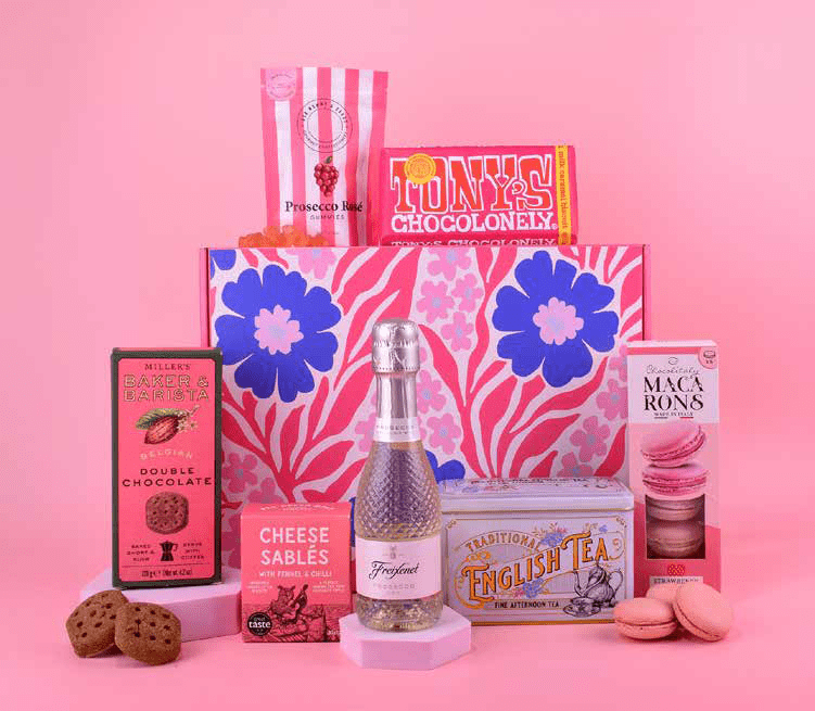 An elegant gift box designed for moments worth celebrating. This luxurious selection pairs beautifully presented rosé Prosecco with indulgent chocolates, refined biscuits, savoury nibbles and a classic afternoon tea tin, creating a perfectly balanced mix of sweet, savoury and sparkle. Ideal for birthdays, anniversaries, thank-you gifts or sophisticated celebrations, this gift box delivers a touch of continental glamour with comforting British favourites.
