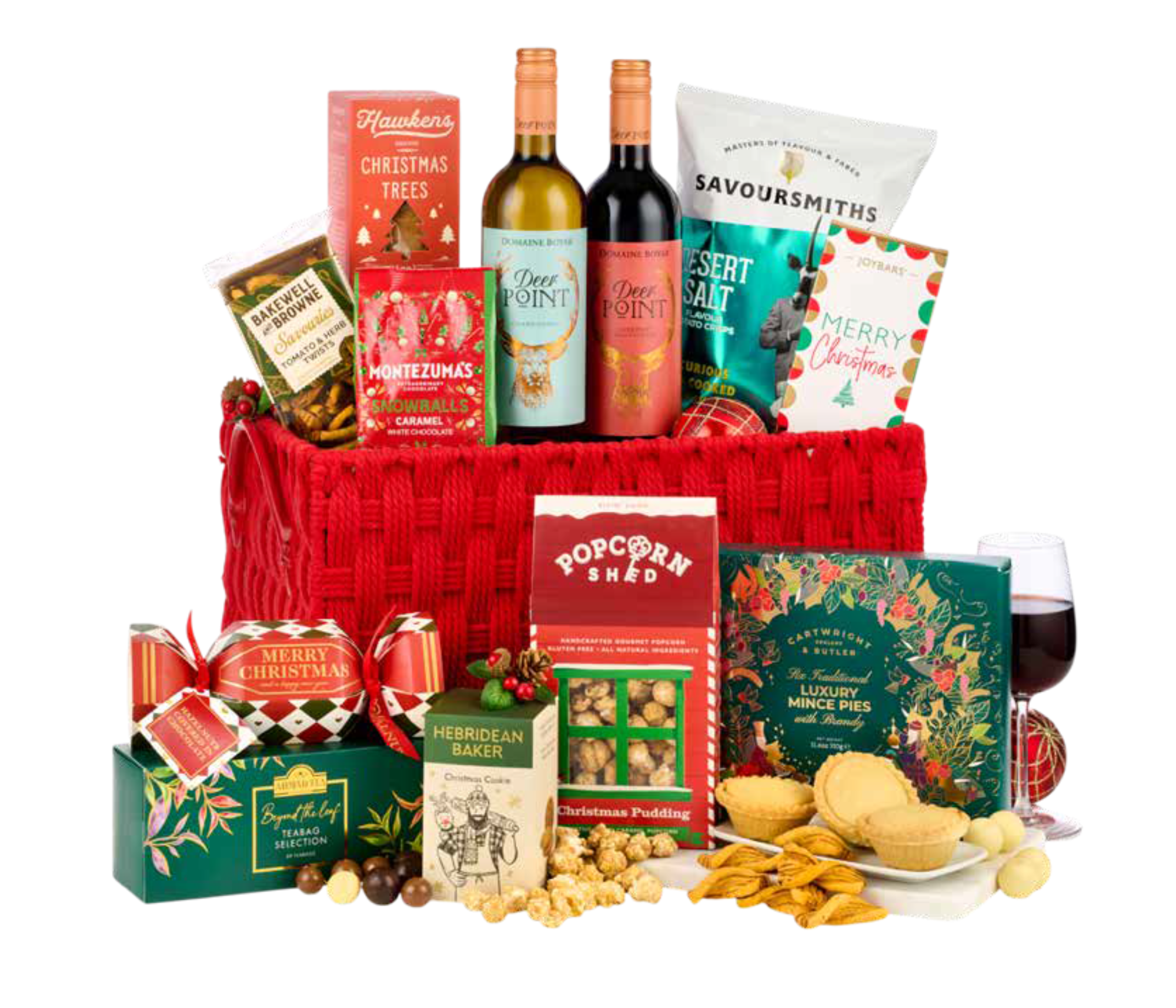 Spread joy this Christmas with the Merry & Bright Gift Hamper, a vibrant and indulgent festive collection presented in a bold and beautiful large red rope basket. Featuring premium wines, decadent chocolates, artisan bakes, and gourmet nibbles, this hamper brings together everything needed for a cheerful, heart-warming celebration.